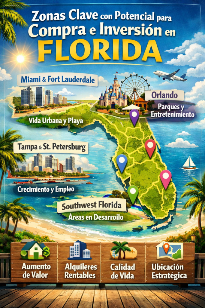 Florida sigue siendo uno de los destinos más atractivos para compradores e inversores internacionales, no solo por su clima y estilo de vida, sino también por las oportunidades que ofrecen sus mercados inmobiliarios. Desde la fuerte demanda en el sur de Florida hasta mercados emergentes como Orlando y Tampa, conocer las zonas con mayor potencial es clave para tomar decisiones inteligentes de inversión.